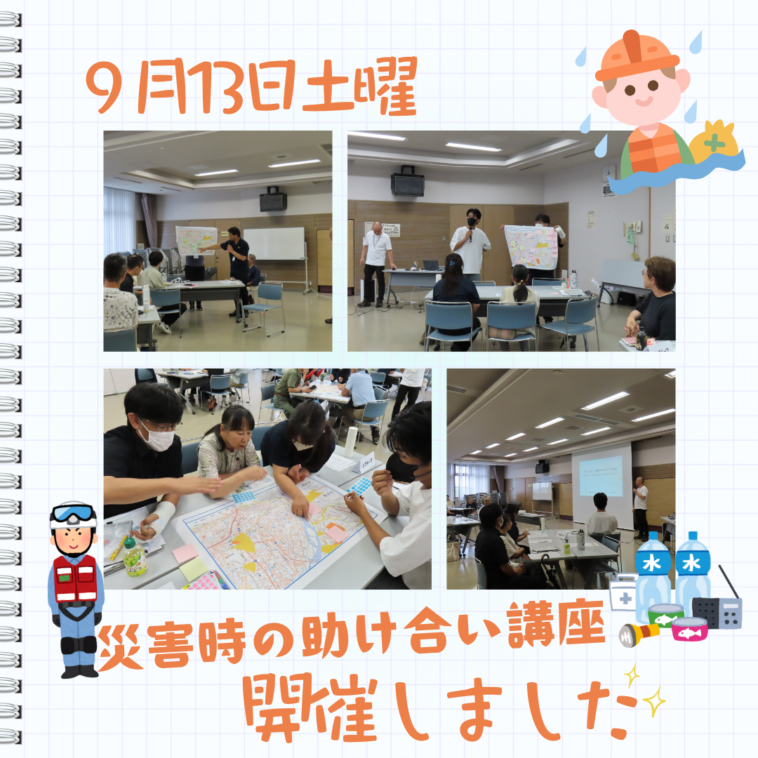 飯田市ボランティアセンターでは、9月13日(土)に災害発生時に地域で助け合うための講座を開催し、市民、高校生、地区の民生児童委員など、多くの方にご参加いただきました。