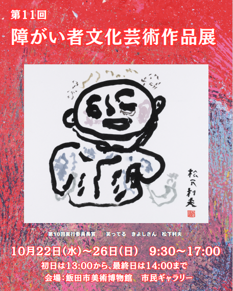 飯田市社会福祉協議会では、市内で文化芸術活動に取り組む障がいのある方の作品展「第11回障がい者文化芸術作品展」を開催します。