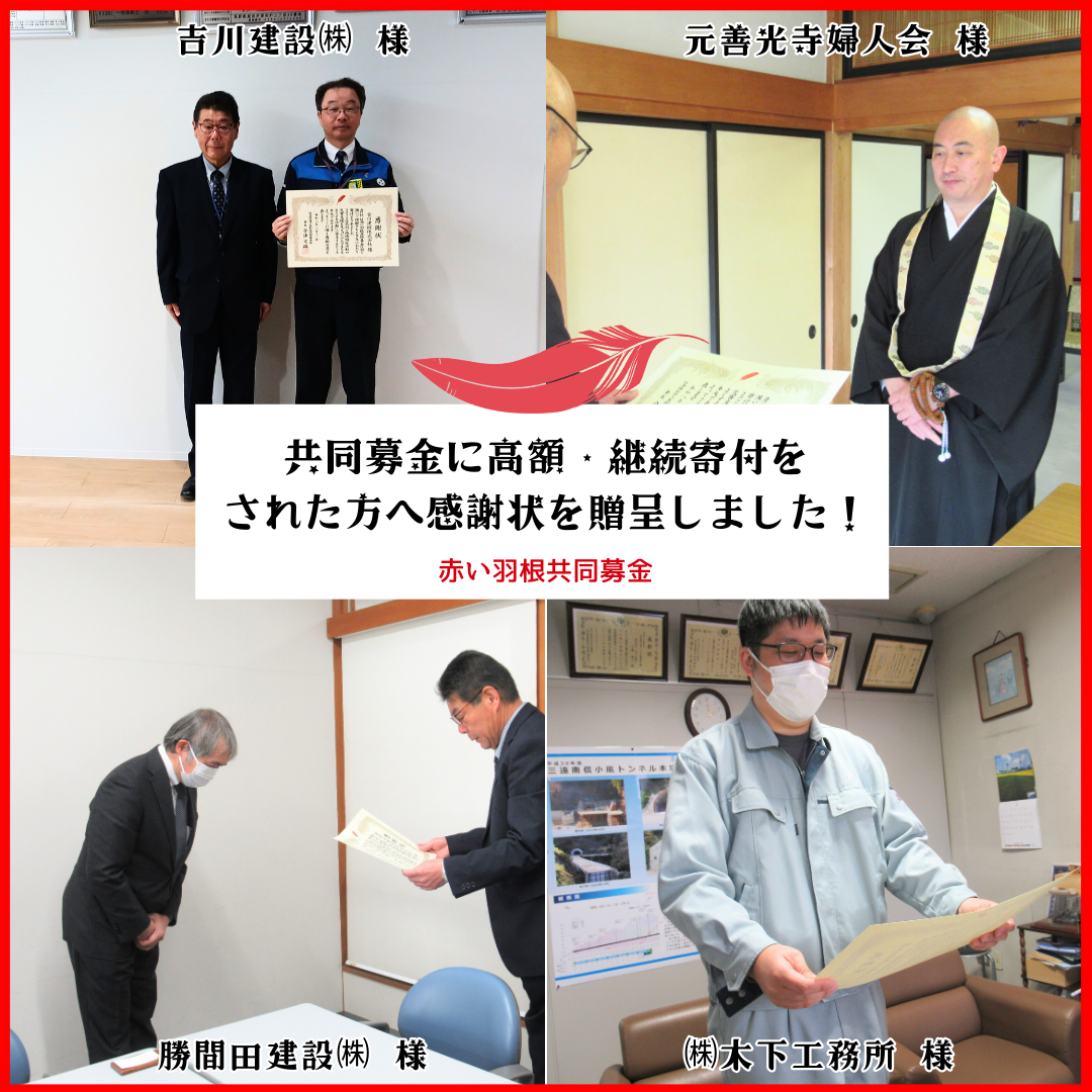 この度、共同募金運動への多大なるご協力をいただきました以下の法人・団体の皆様へ、感謝の意を表し、感謝状の贈呈をいたしました。