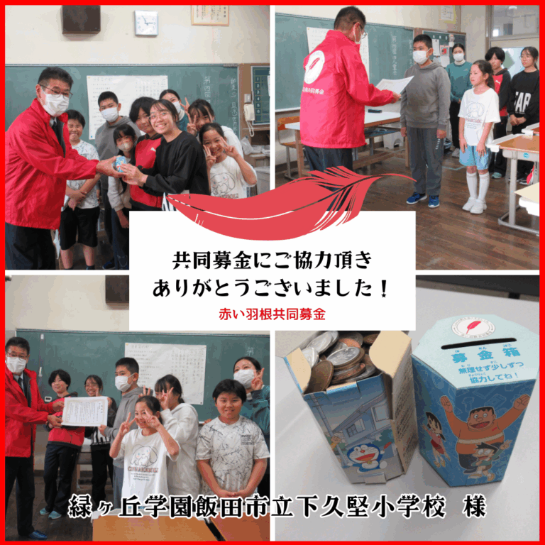 緑ヶ丘学園飯田市立下久堅小学校様より募金をいただきました