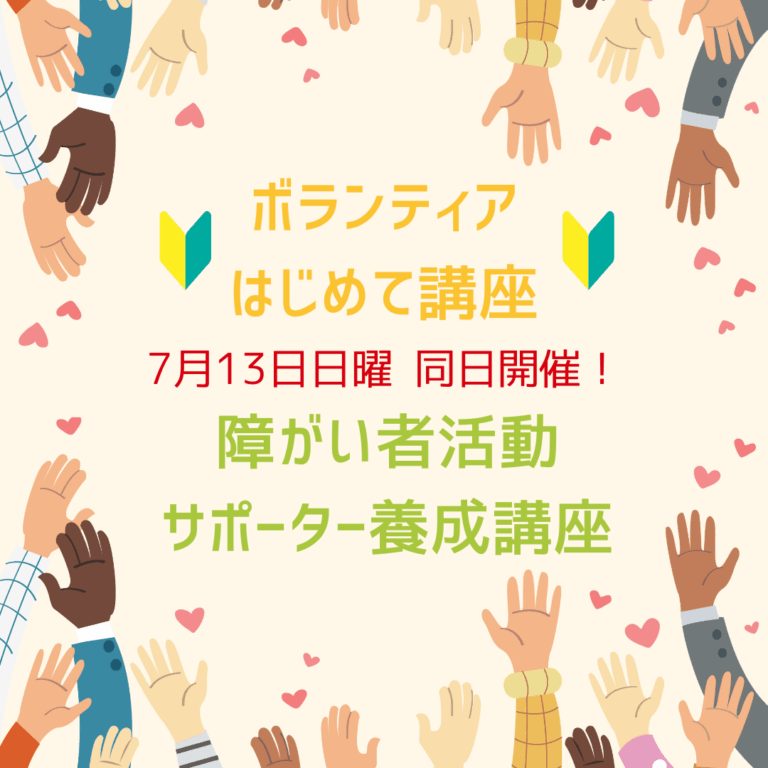 イベントお知らせボランティア障がい者支援 令和7年度 ボランティアはじめて講座・障がい者活動サポーター養成講座のご案内 2025年6月16日 「ボランティアに興味があるが、何から始めていいのかわからない」そ… 続きを読む