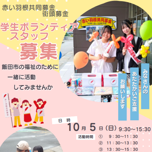 お知らせボランティア赤い羽根共同募金 令和7年度(来年度) 赤い羽根共同募金 NPO・ボランティア活動助成を希望する団体を募集します 2024年11月28日 赤い羽根共同募金では、民間非営利団体(NPO)やボランティアグル… 続きを読む